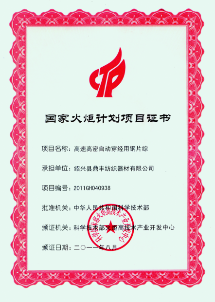 浙江鼎豐紡織器材有限公司始建于1986年,是一家專業(yè)生產(chǎn)各類無梭織機用鋼筘:噴氣筘、噴水筘、劍桿筘、其他類型鋼筘;鋁合金綜框、鋼片綜、停經(jīng)片、經(jīng)軸、織軸、卷布輥等產(chǎn)品及配件的民營企業(yè)。